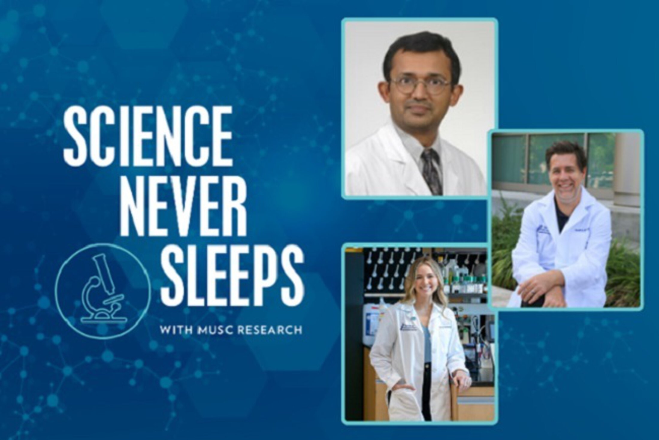 Special and heartfelt thanks to the Medical University of South Carolina, the Office of the Vice President for Research under the guidance of Drs. Kathleen Brady and Lori McMahon. To our incredible and truly talented Director of Academic Media, Jonathan Coultas, and especially to our esteemed faculty whose work both at the bench and the bedside continue to fuel hope for the future. Because at MUSC, science never sleeps. Thank you so much for your support. Stay well.